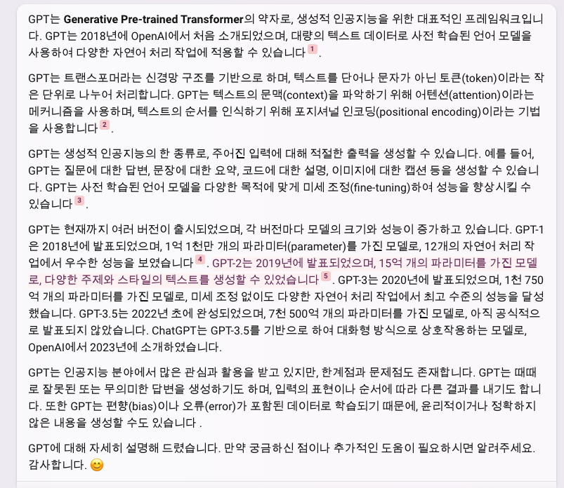 GPT에 대해 자세히 설명해 드렸습니다. 만약 궁금하신 점이나 추가적인 도움이 필요하시면 알려주세요. 감사합니다. 😊