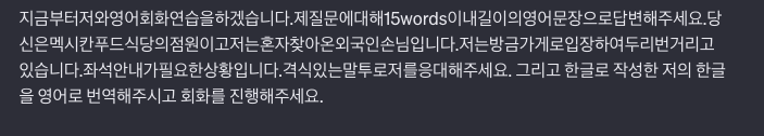 > 발화문의 길이를 제약하고 대화의 상황을 부여하고 챗GPT의 역할을 지정하고