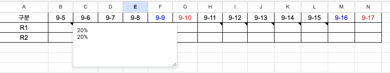 아래 시트 에 진척도를 메모로 넣고 싶었는데
