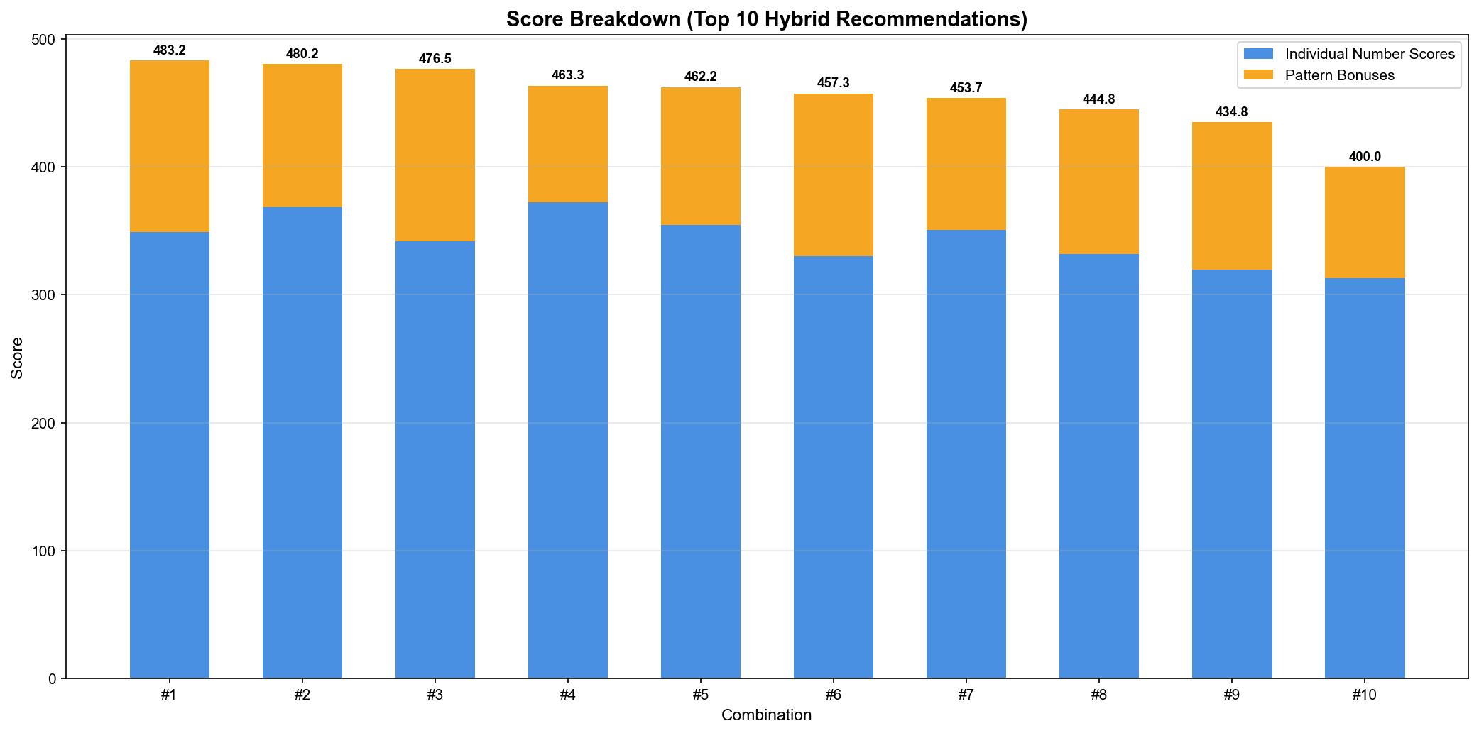 추천시스템, 하이브리드, 점수기반, 확률가중치, 패턴기반, 그리드패턴, 연속번호, 무작위, 중복제거, 검증시스템, 보너스점수, Seed, 재현성