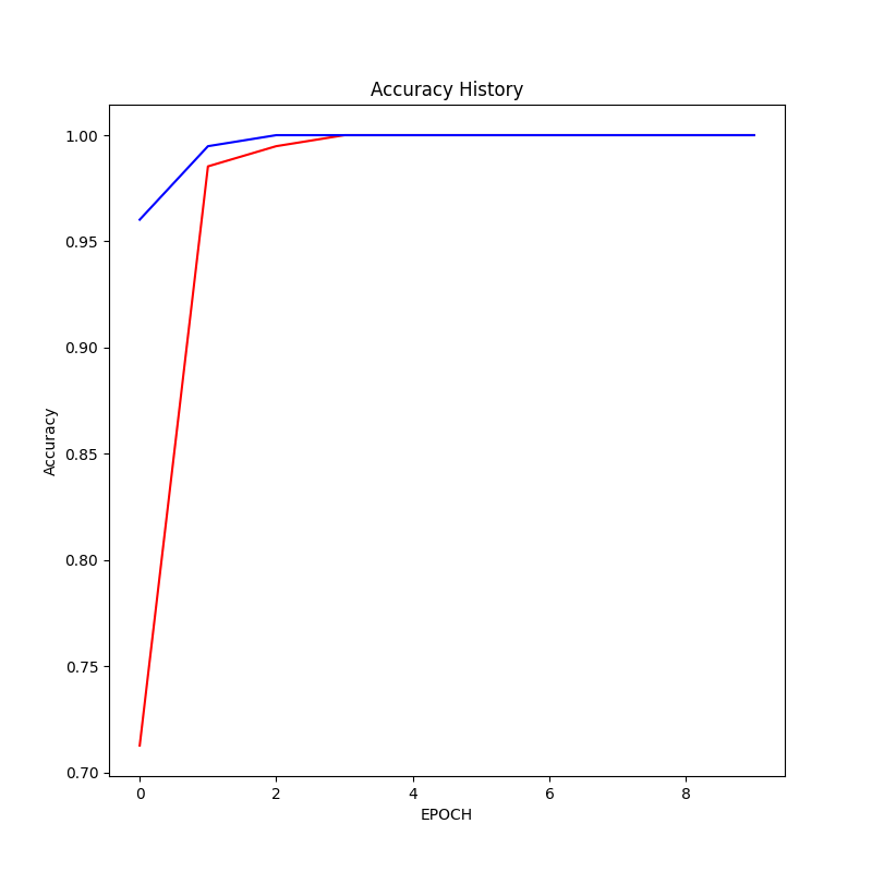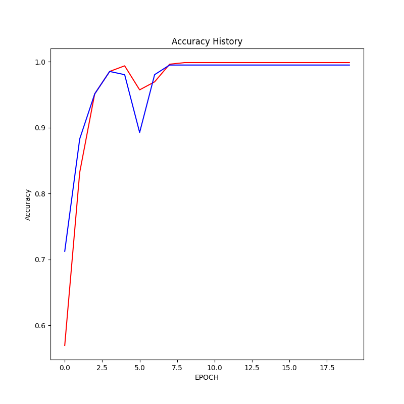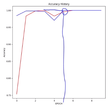 인공제능 제 2호 : 정확도가 강의에는 93%인데 100%이 나왔자만 일정한 곡선이 없는 것으로 보아 일반화까지 못갔고 학습이 덜되었다고 봐야 한다. 오퍼피팅이 남아서 드랍아웃이 안 먹힌다. (강의는 안 그런데)
