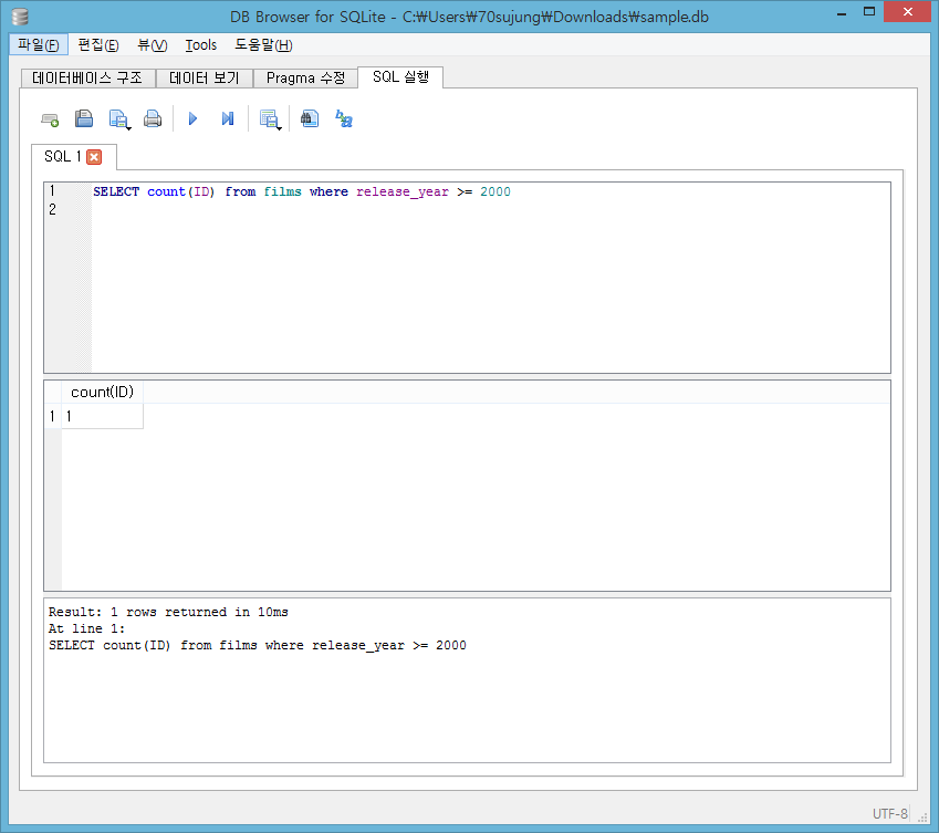 5.4.2) film_id로 영화찾기 : select * from films where id = ()