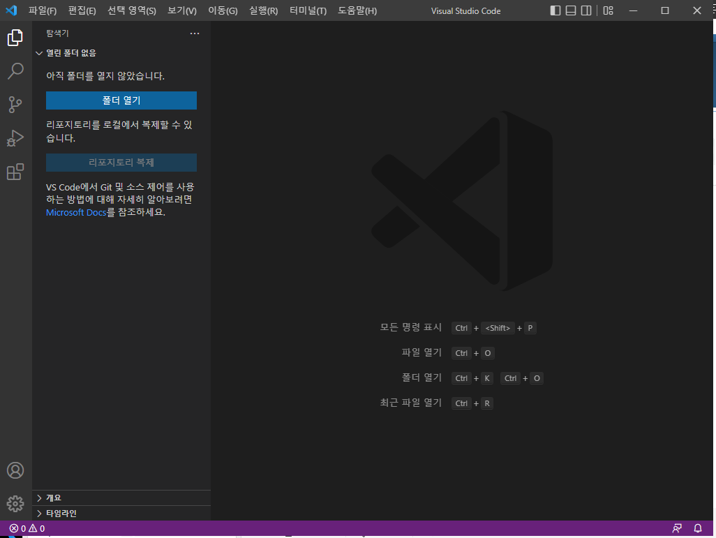 설치후 프로젝트 설정 (신뢰 선택) 하고 창 크기/폰트크기 재설정한다.ㅡ compact폴더 해지, 파이썬 확장프로그램 설치