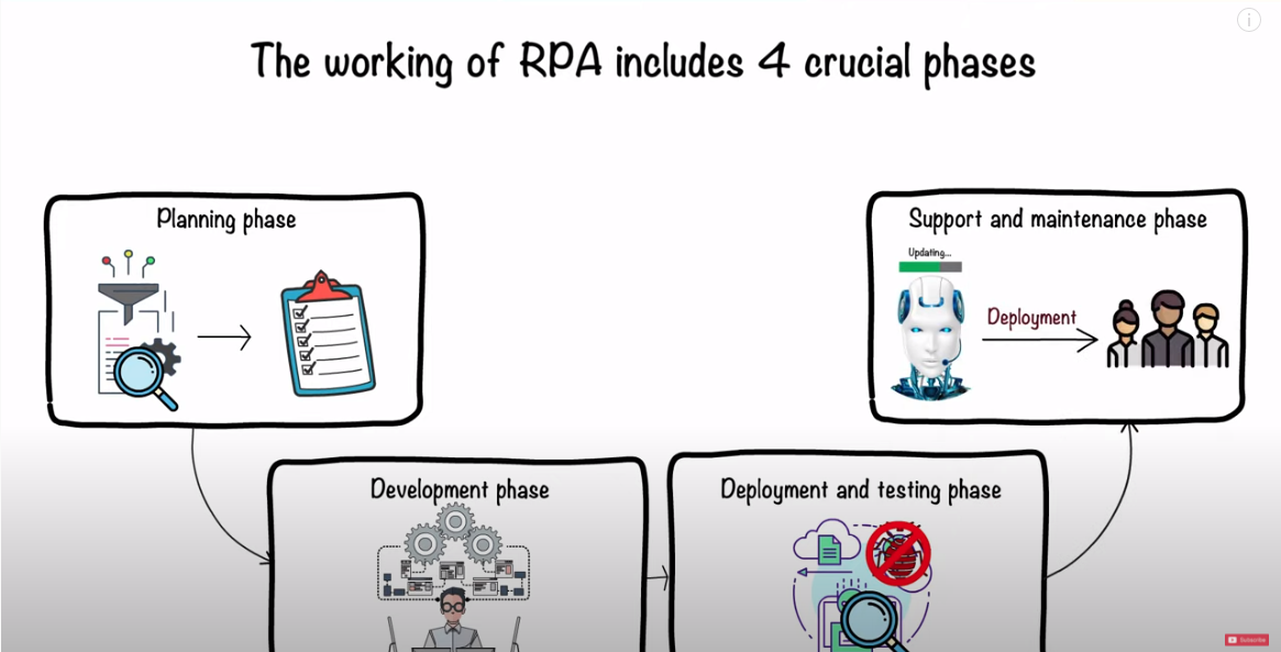 RPA는 운영외 플랜/개발/배포/유지보수의 4가지 단계가 필요하다.