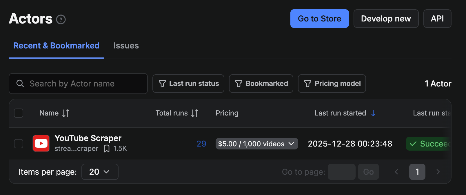 5) 메이크와 apify 유튜브스크래퍼 연동하기 (가입하기 선행되어야 함)